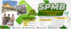 SD Tulus Kartika dengan berbesar hati bermaksud membuka pendaftaran dan penerimaan murid baru kelas 1 atau pindahan di kelas lainnya, untuk tahun ajaran 2026-2027. Postingan siswa SD Tulus Kartika Untuk detail informasi yang Bapak/Ibu/Ananda perlukan dapat dilihat dari halaman-halaman berikut ini: Jika ada pertanyaan atau kesulitan dalam mengisi formulir, jangan segan-segan untuk mengirim pesan WA … Lanjutkan membaca Penerimaan Peserta Didik Baru (PPDB)