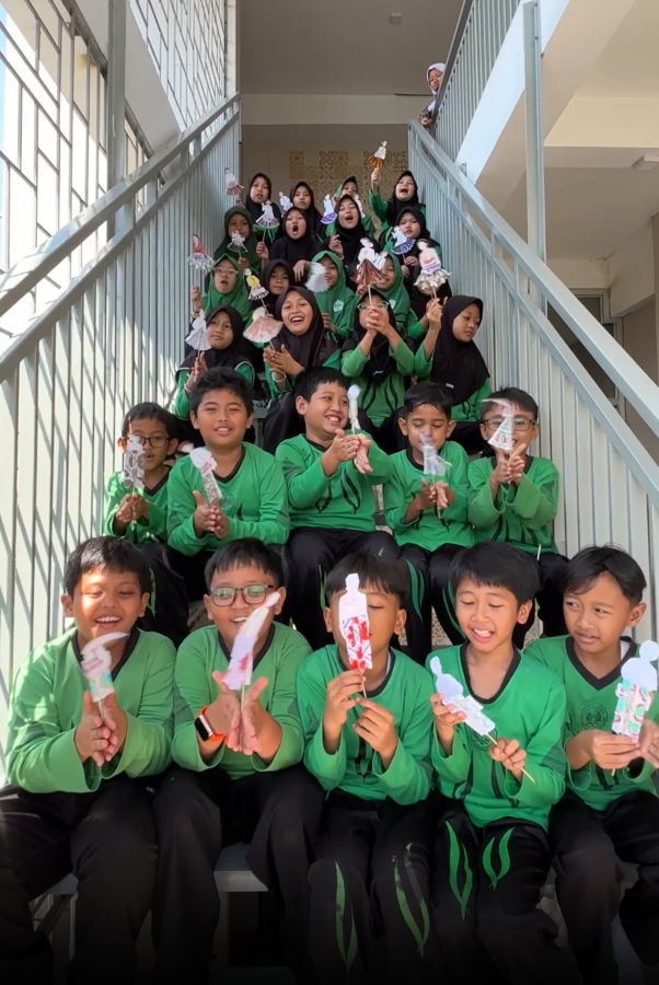 Anak-anak bebas berkreasi memilih dan mewarnai motif batik khas Indonesia yang beragam motif. Dari Kawung, Parang, Mega Mendung, sampai motif kreasi mereka sendiri. Perpaduan warna merah, biru, kuning, hijau yang berani bikin setiap wayang punya cerita.