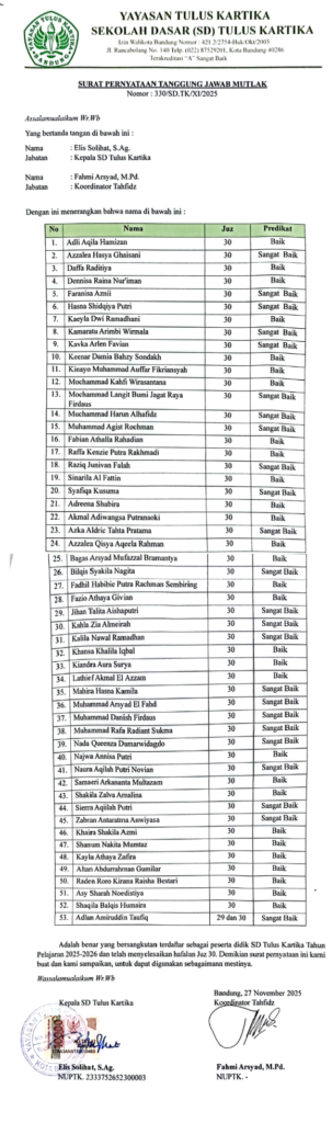 Daftar Hafizh Juz30 tahun 2025