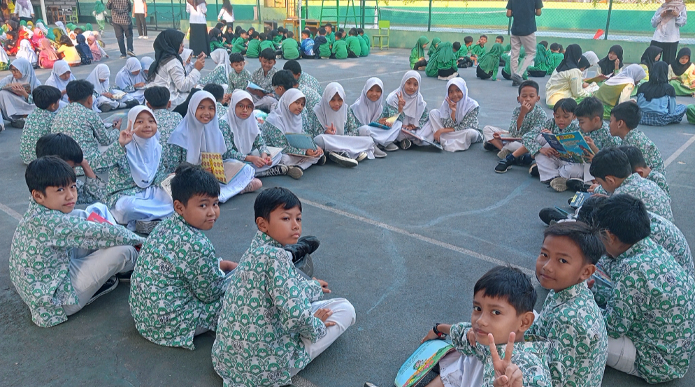 Halaman sekolah berubah jadi lautan buku saat seluruh siswa tenggelam dalam petualangan literasi bersama. Bukan cuma membaca, tapi kami sedang membuka jendela dunia seluas-luasnya sebelum mulai belajar di kelas.